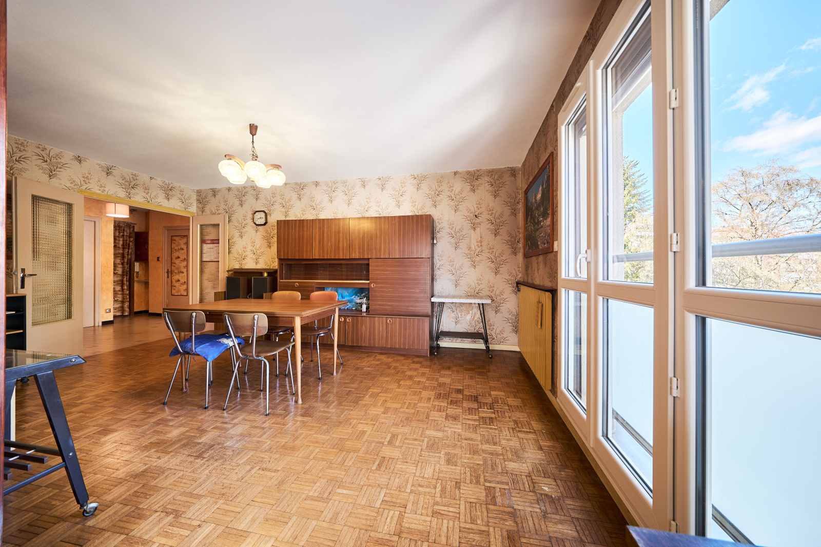 Annecy-le-Vieux (74940)Aux coeurs du quartier des Pommaries, à deux pas de tous commerces, commodités et lac, un grand T3 de 83m² au 1er étage avec ascenseur d'un immeuble des années 70 récemment isolé par l'extérieur. Entrée avec dressing et placard, cuisine séparée sur loggia, salle à manger avec salon sur balcon Sud au calme, 2 chambres, une salle d'eau et wc séparés. En annexes, une cave et une place de parking privative. Les informations sur les risques auxquels ce bien est exposé sont disponibles sur le site Géorisques : www.georisques.gouv.fr